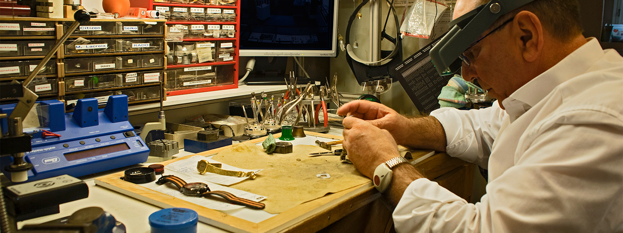 Als Juwelierfachgeschäft stehen wir Ihnen mit Handwerkskompetenz für Service und Reparaturen zur Verfügung. Als zertifizierte Service-Werkstatt bieten wir Ihnen das Know-how für viele Schweizer Uhrenmarken. Ob Batteriewechsel, Pflegetipps oder eine größere Reparatur - unser Service wird Sie überzeugen.